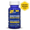 Shop Now - Supplement bottles labeled 'Serotonin Brain Food', 'Dopamine Brain Food', 'Choline Brain Food', and 'GABA Brain Food' on a white surface with a yellow background.